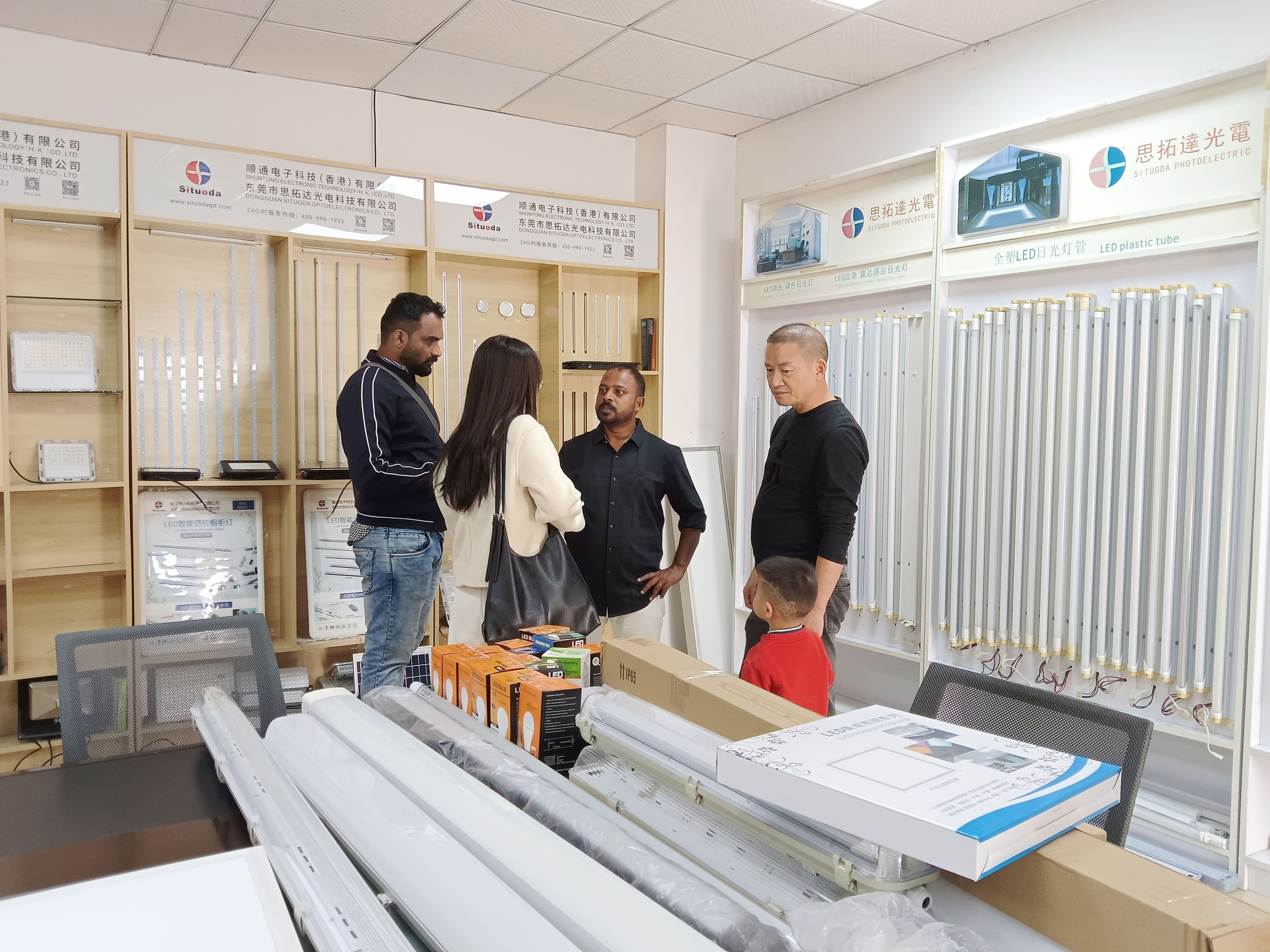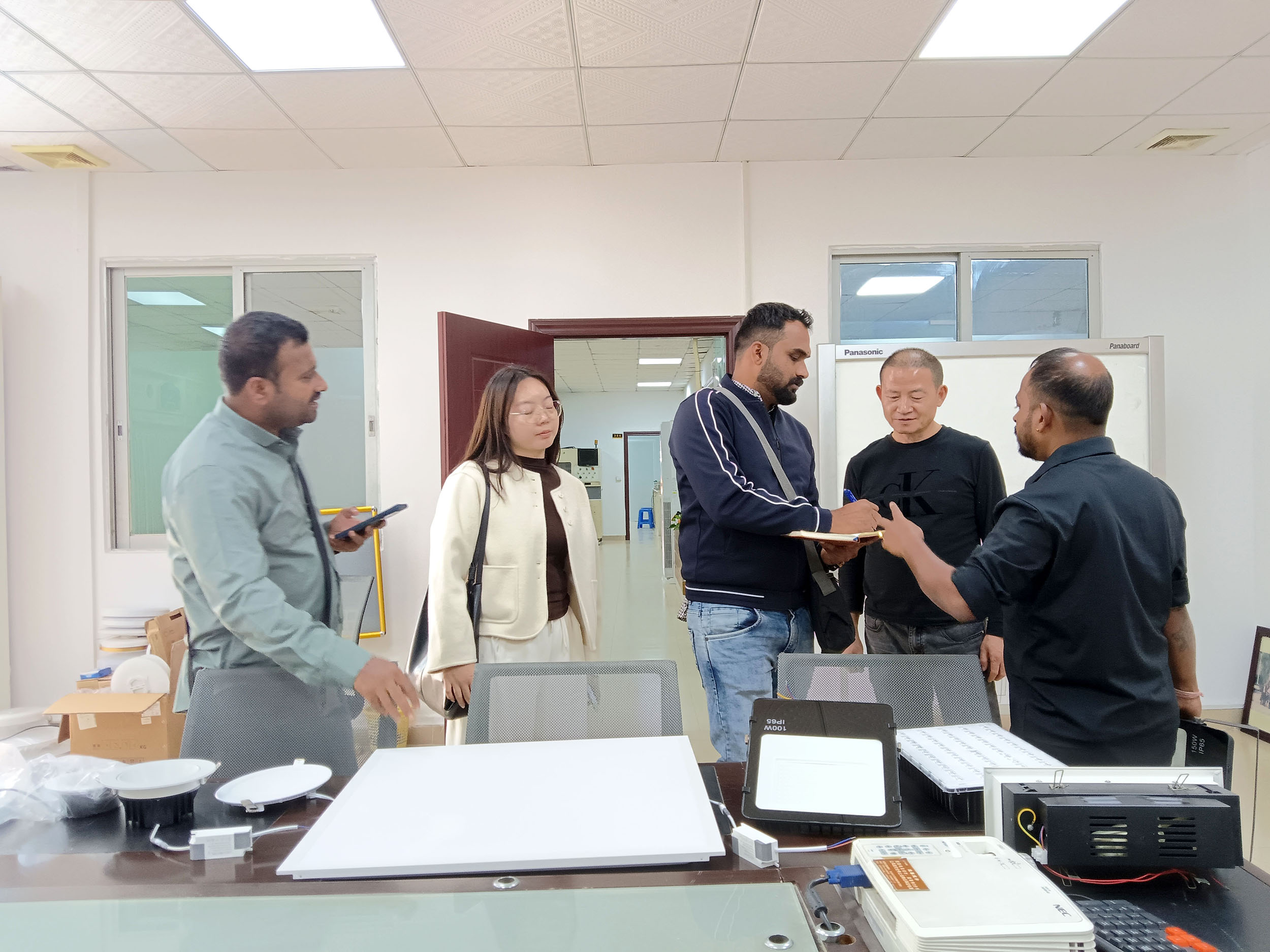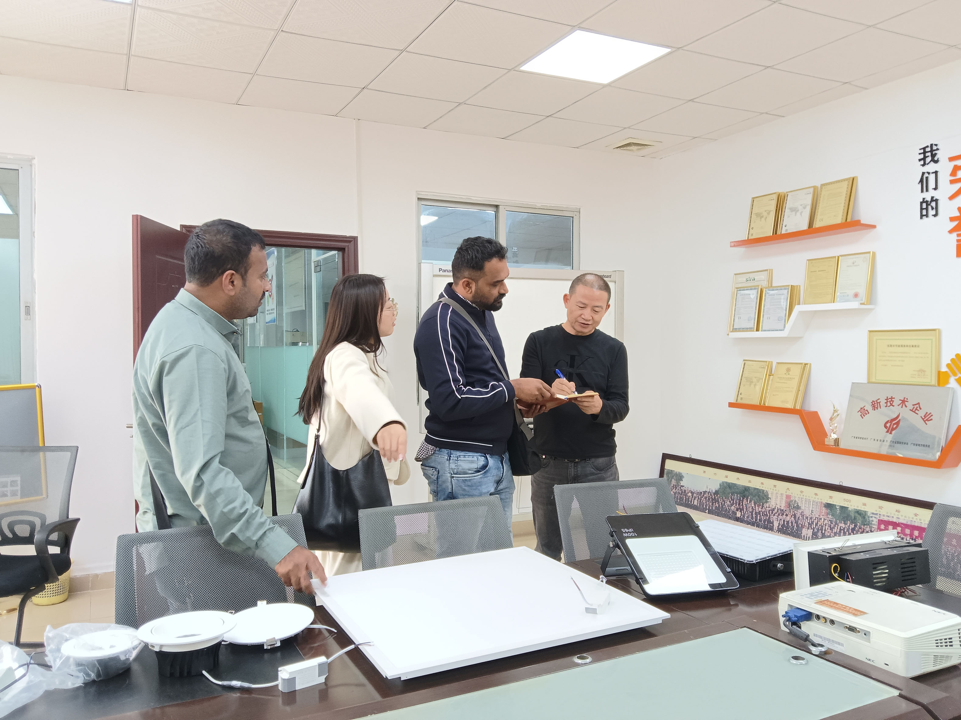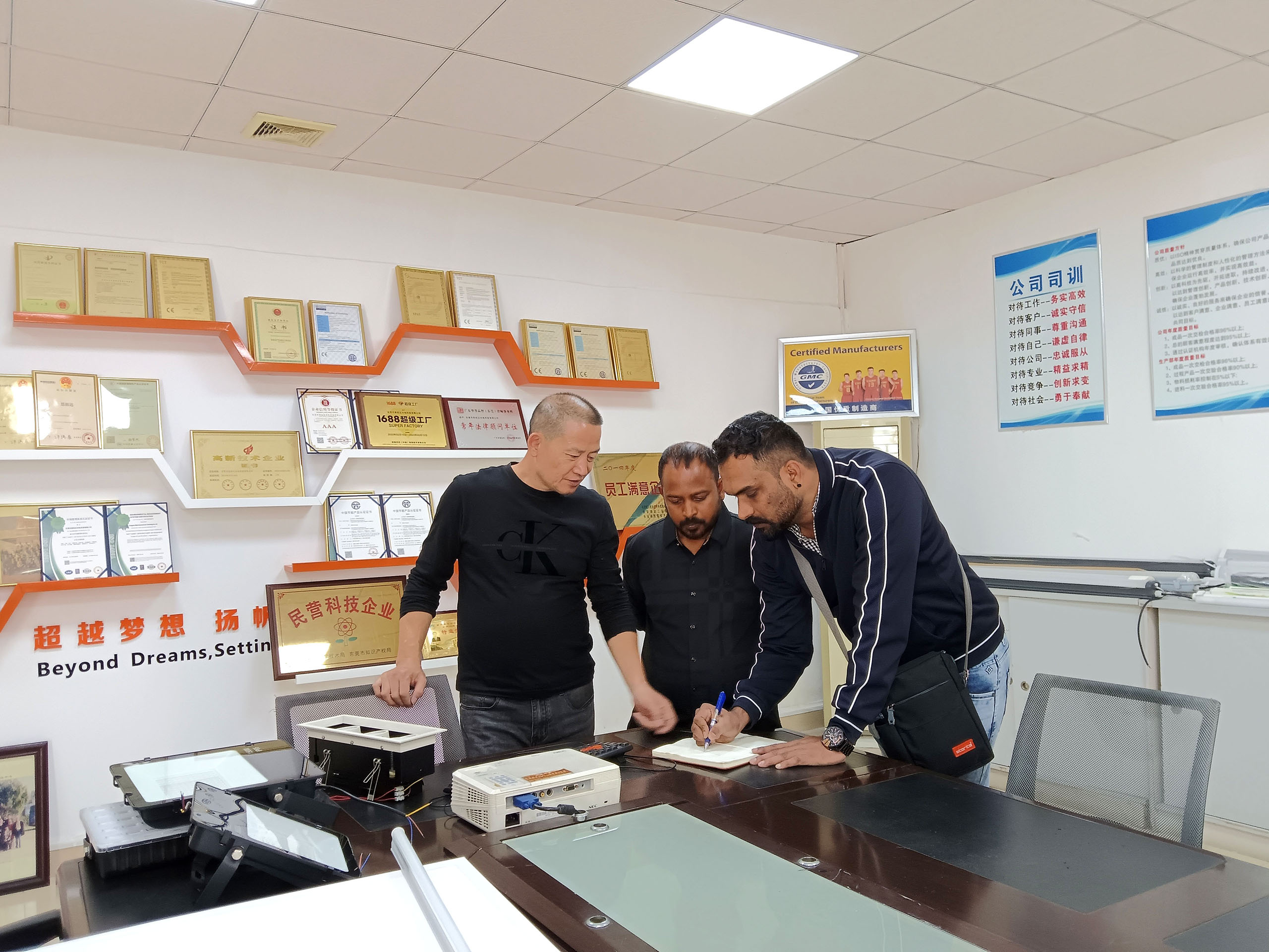 我们公司领导全程陪同客户,给客户现场讲解产品以及技术沟通,下面是与客户在展厅的互动: