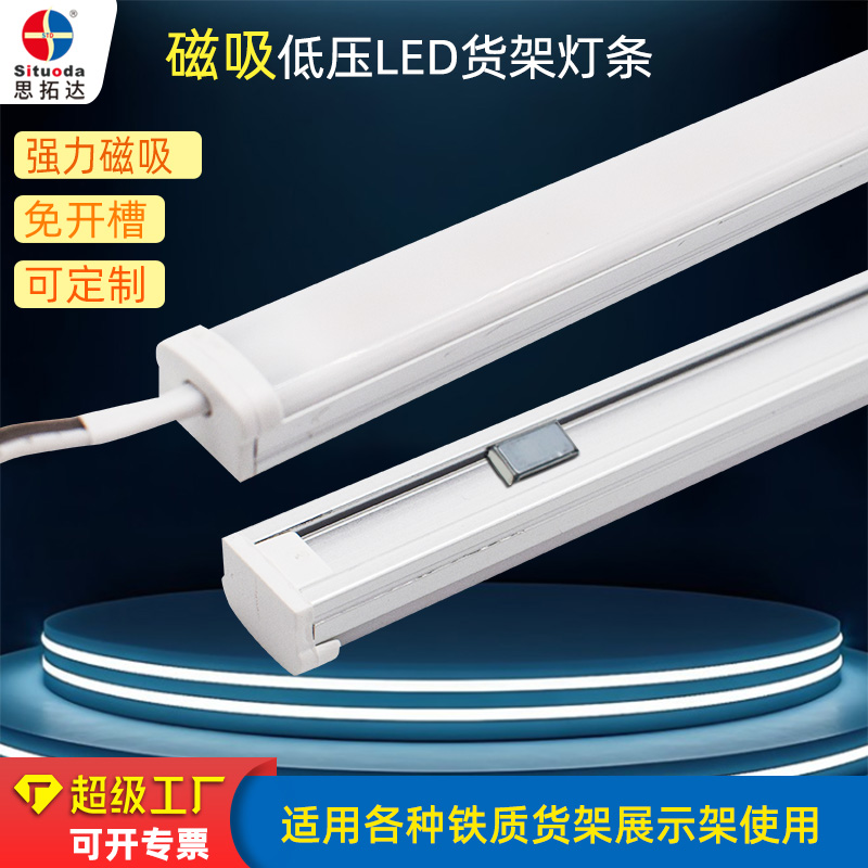 低压磁吸货架灯的优势在于其灵活性和可定制性。由于灯具可以磁吸自由移动,因此可以轻松调整照明角度和范围,实现局部重点照明或整体均匀照明。此外,根据实际需求,用户还可以选择不同长度进行组合,打造出个性化的照明方案。